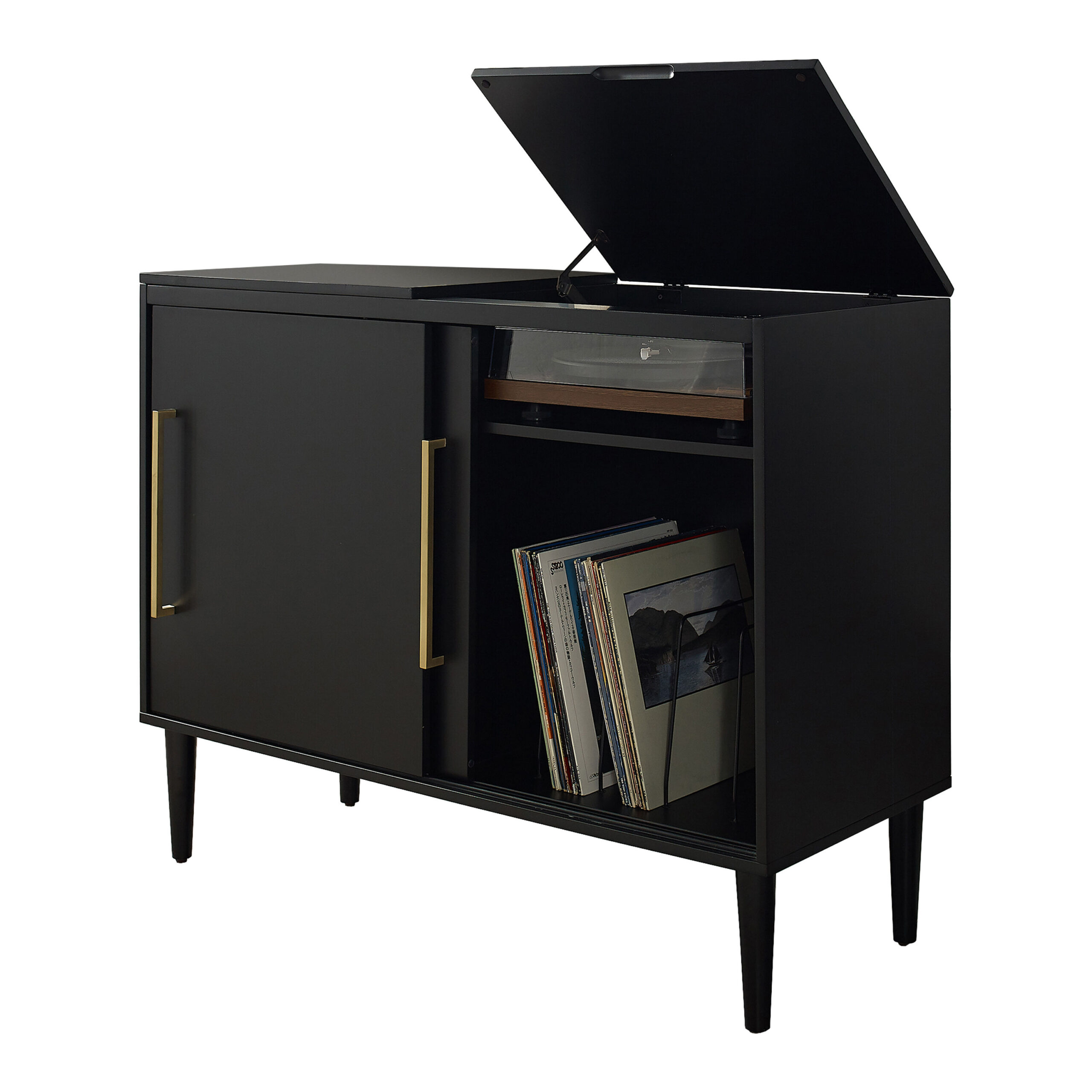 Fowler Wood Mid Century Media Stand with Record Storage